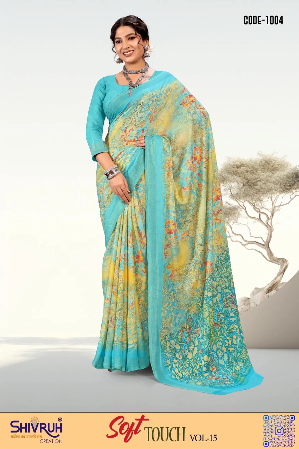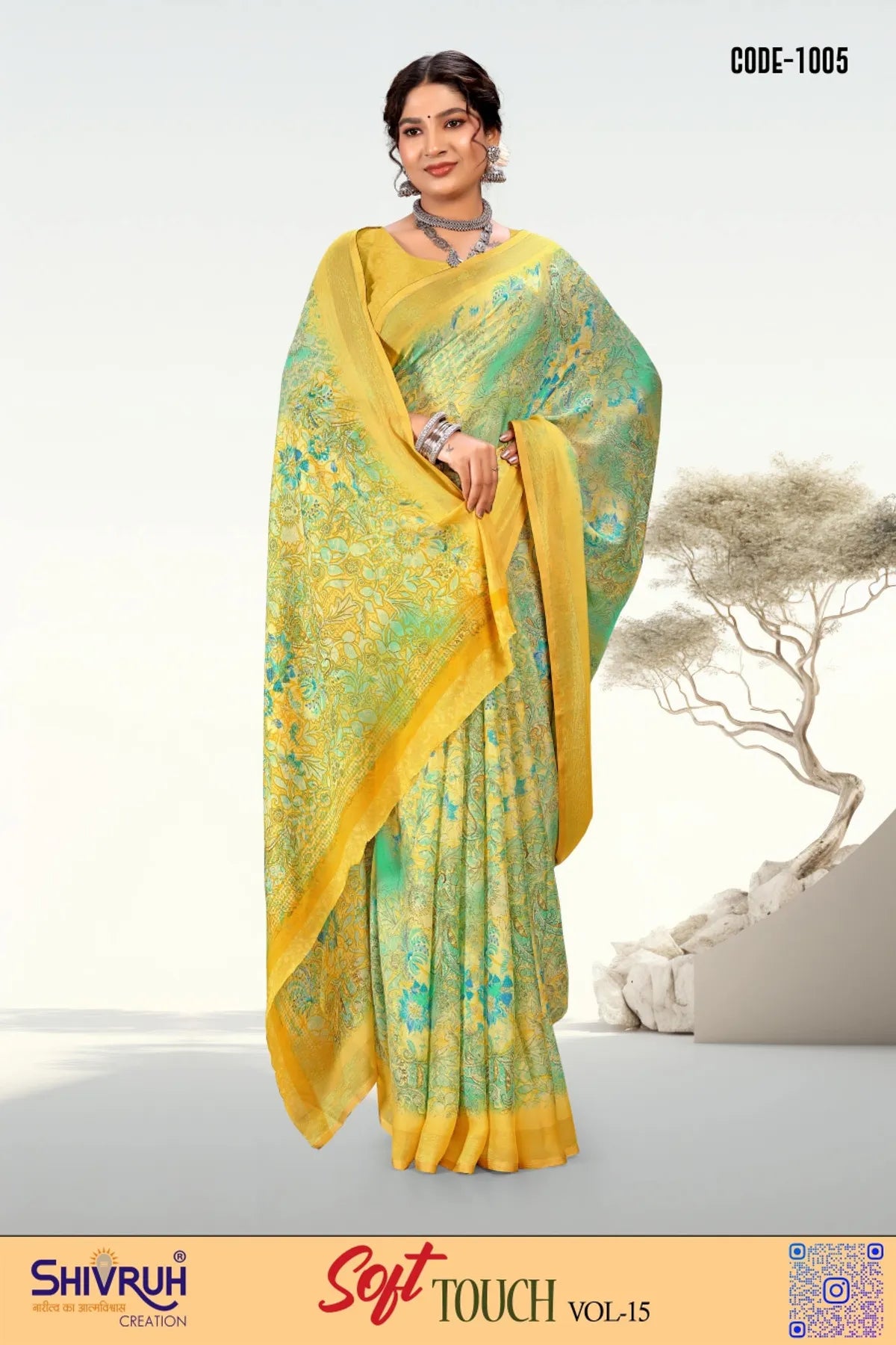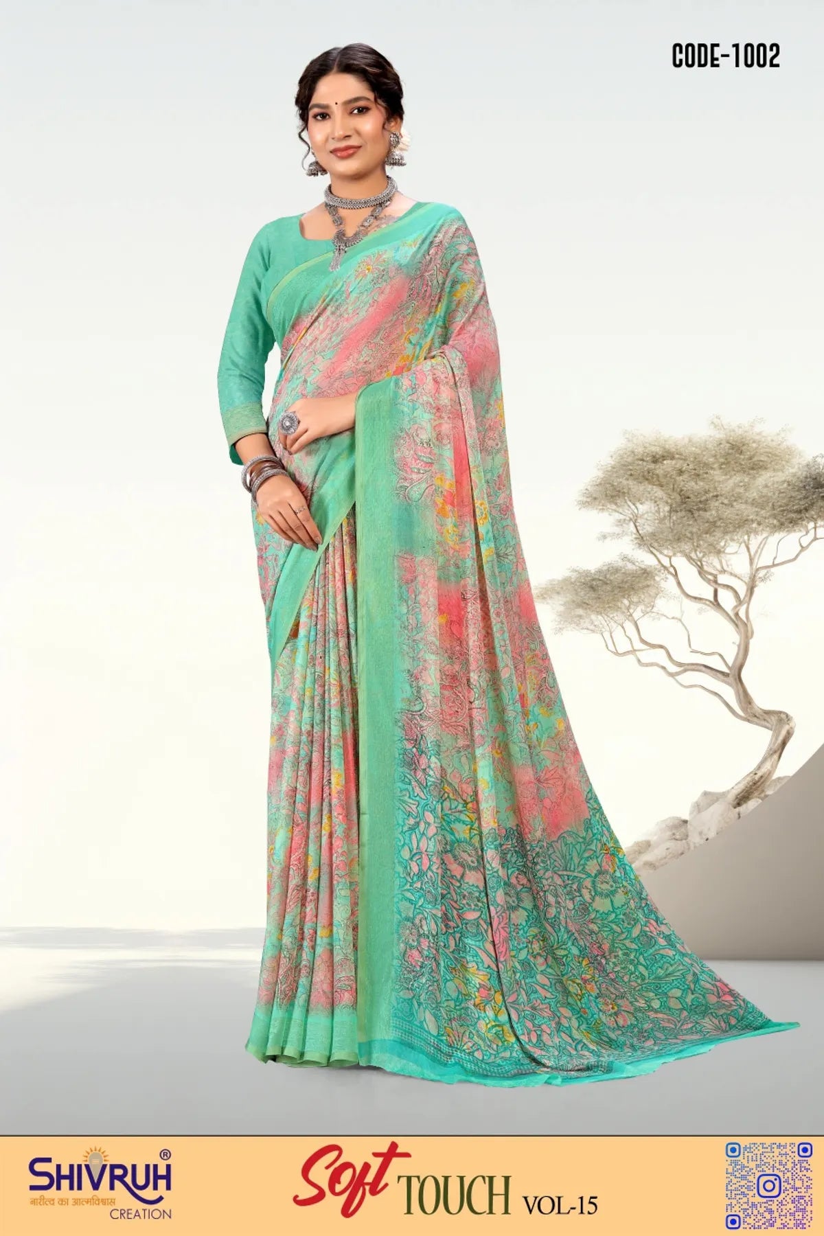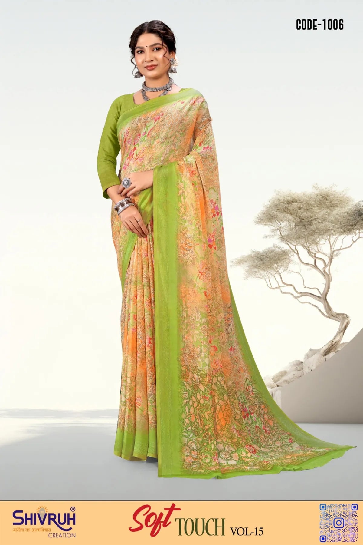 Introducing our brand new design saree from Shivruh - the Moss Chiffon fabric saree with a stunning Digital Print pattern and Woven Jari Border. This Fancy saree is perfect for any Home Event, Party, Festival, or wedding occasion. Elevate your wardrobe with this elegant saree that is a must-have for women who love to make a statement.