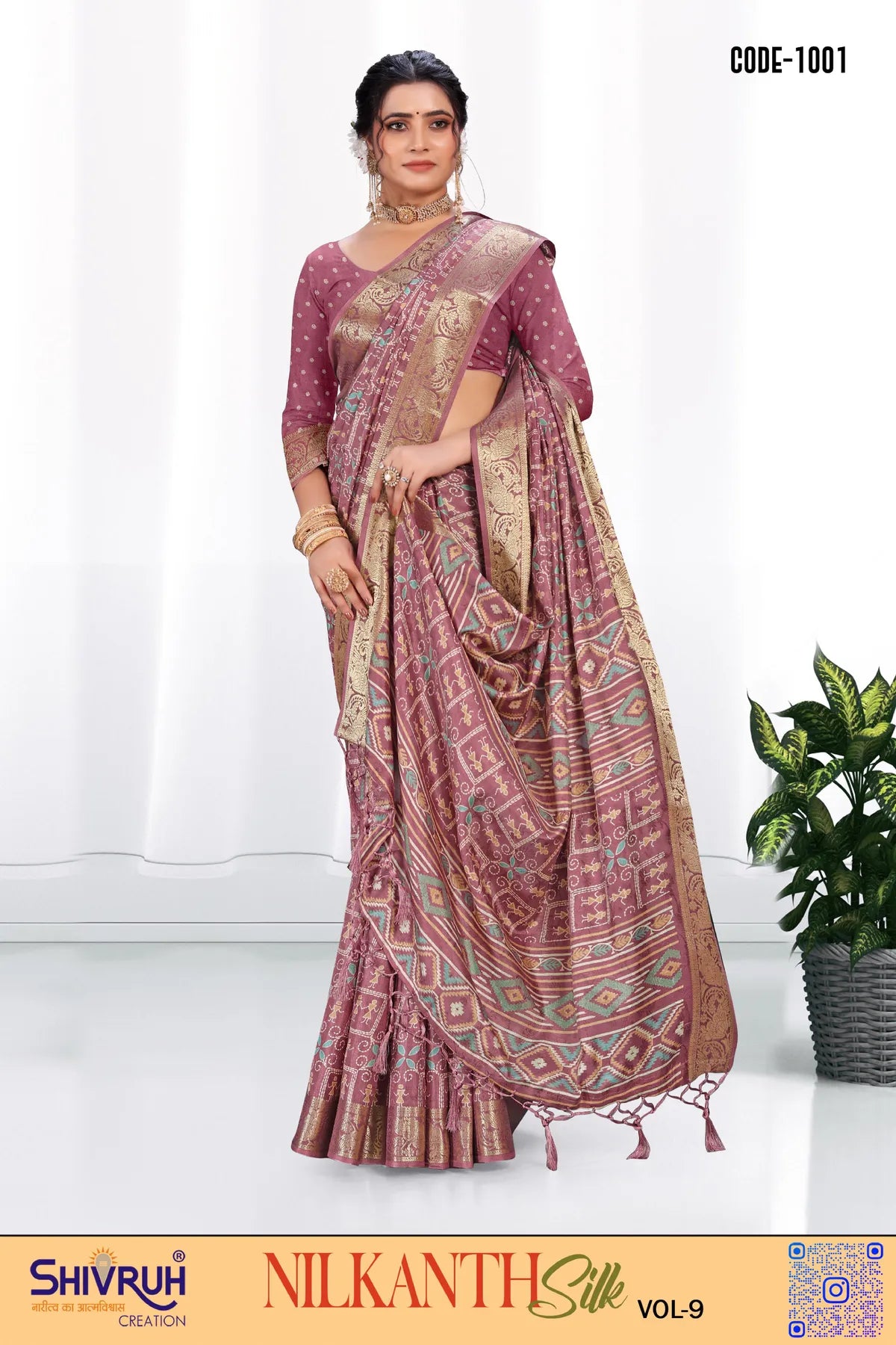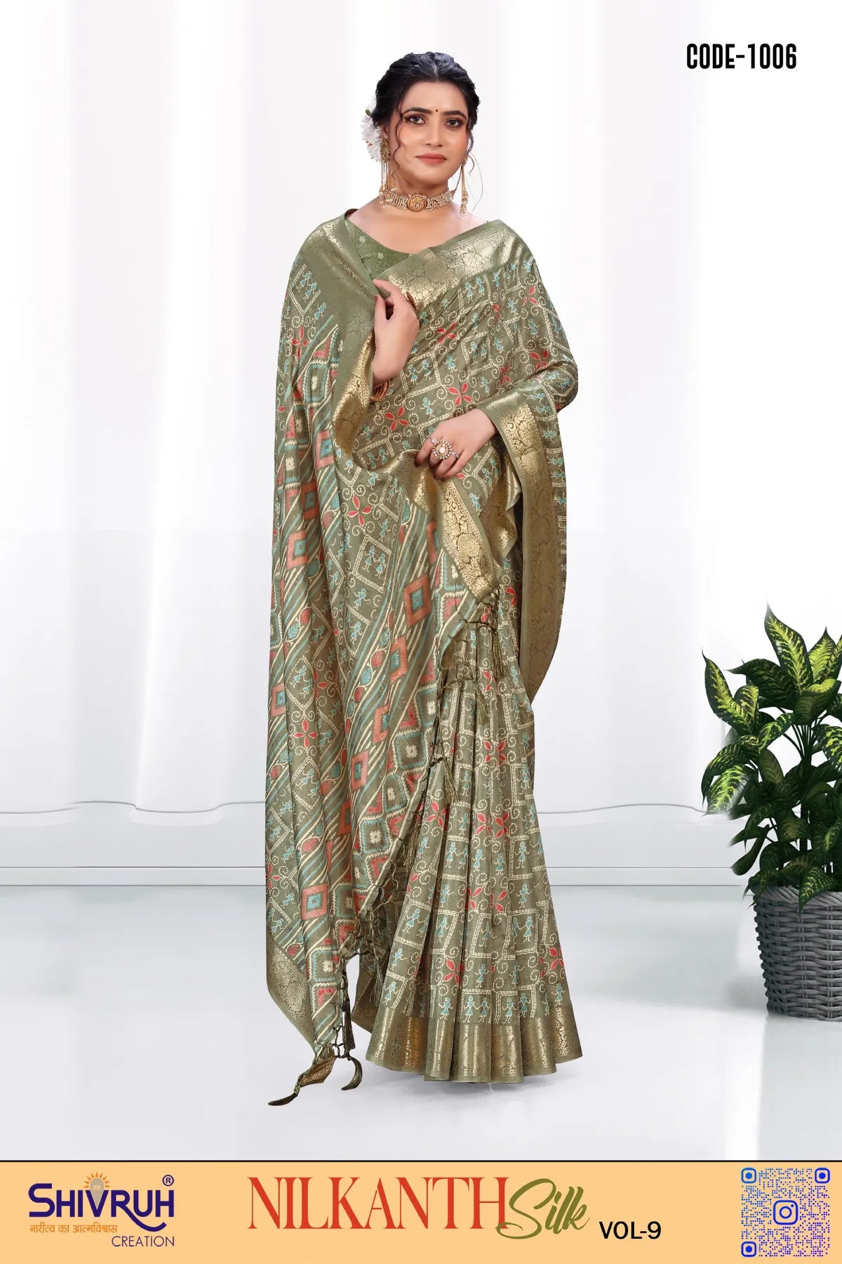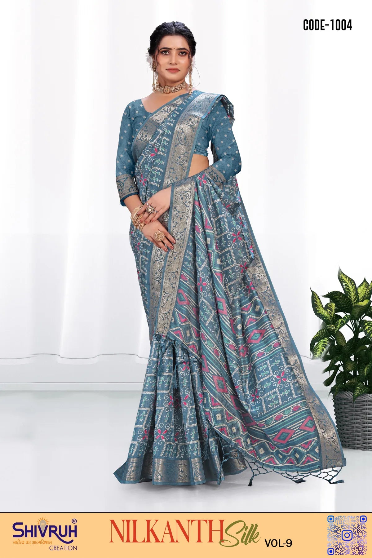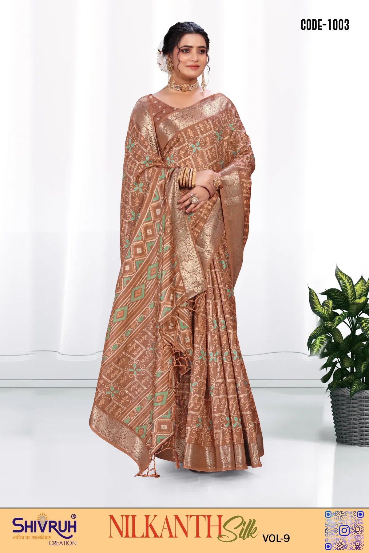 Elevate your wardrobe with our exquisite SHIVRUH brand Saree and Blouse set, crafted from luxurious Dola Silk fabric. Available in a range of stunning colors, this premium saree features a sophisticated geometrical design printed work, perfect for high class, affluent women. The intricate Jhalar detailing on the blouse adds a touch of elegance, making it the ideal choice for weddings and special occasions. Make a statement with this exclusive Jacquard border saree, designed for the modern, discerning woman.