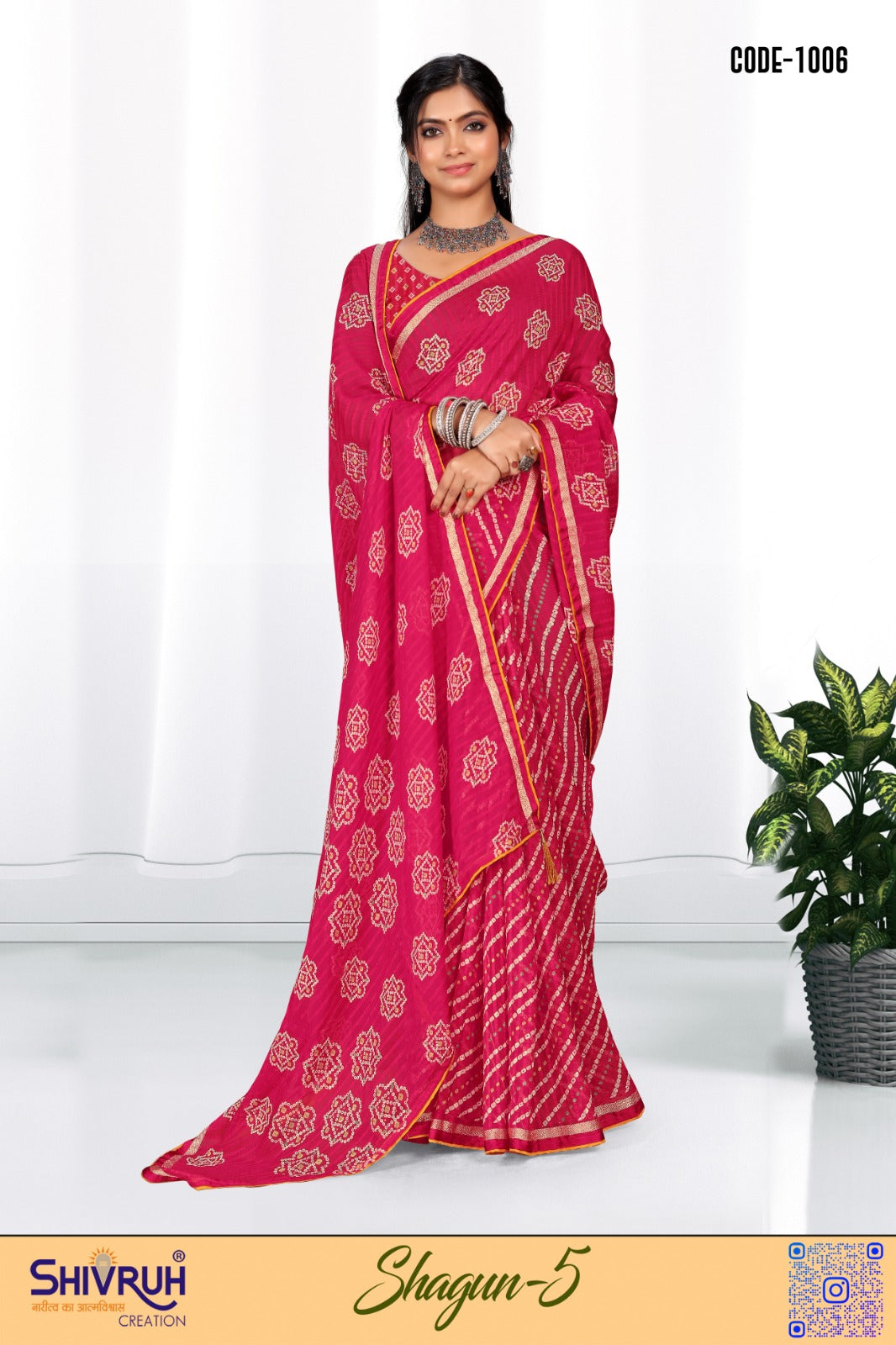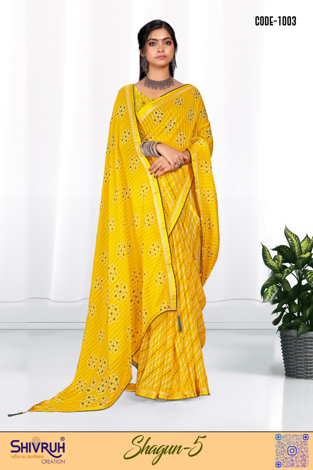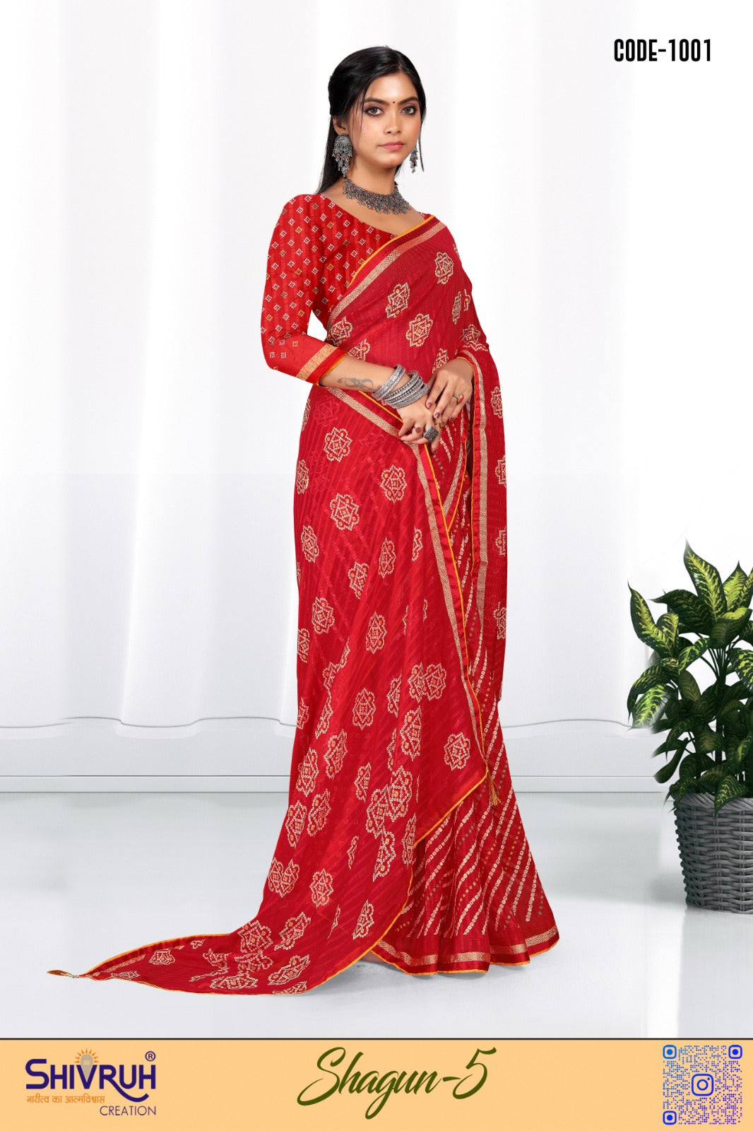 Elevate your festive wardrobe with this Leheriya chiffon saree designed for women. Its lightweight chiffon fabric offers comfort and graceful drape, while the traditional Leheriya pattern adds vibrant yet elegant charm. Perfect for celebrations and special occasions, this saree combines heritage style with modern ease, making it easy to wear and flattering for all body types. Pair it with your favorite blouse design to complete a stunning festive look effortlessly.
