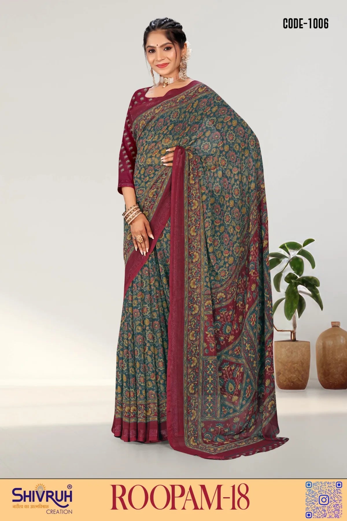 Enhance your classic look with our latest Georgette fabric saree, adorned with a beautiful Geometric design and Woven Jari Border. This stylish saree is ideal for any event - from a casual gathering at home, to a fun party, festive celebration, or even a wedding. Stand out from the crowd and showcase your style with this sophisticated saree crafted specially for women.