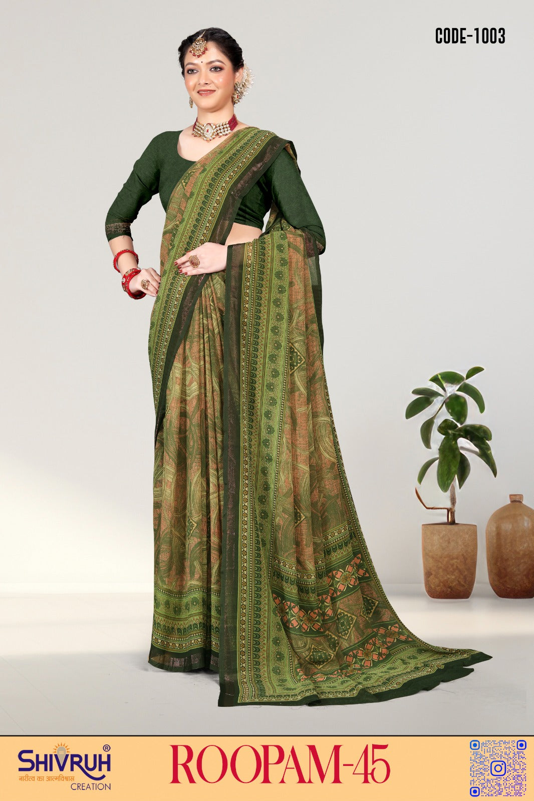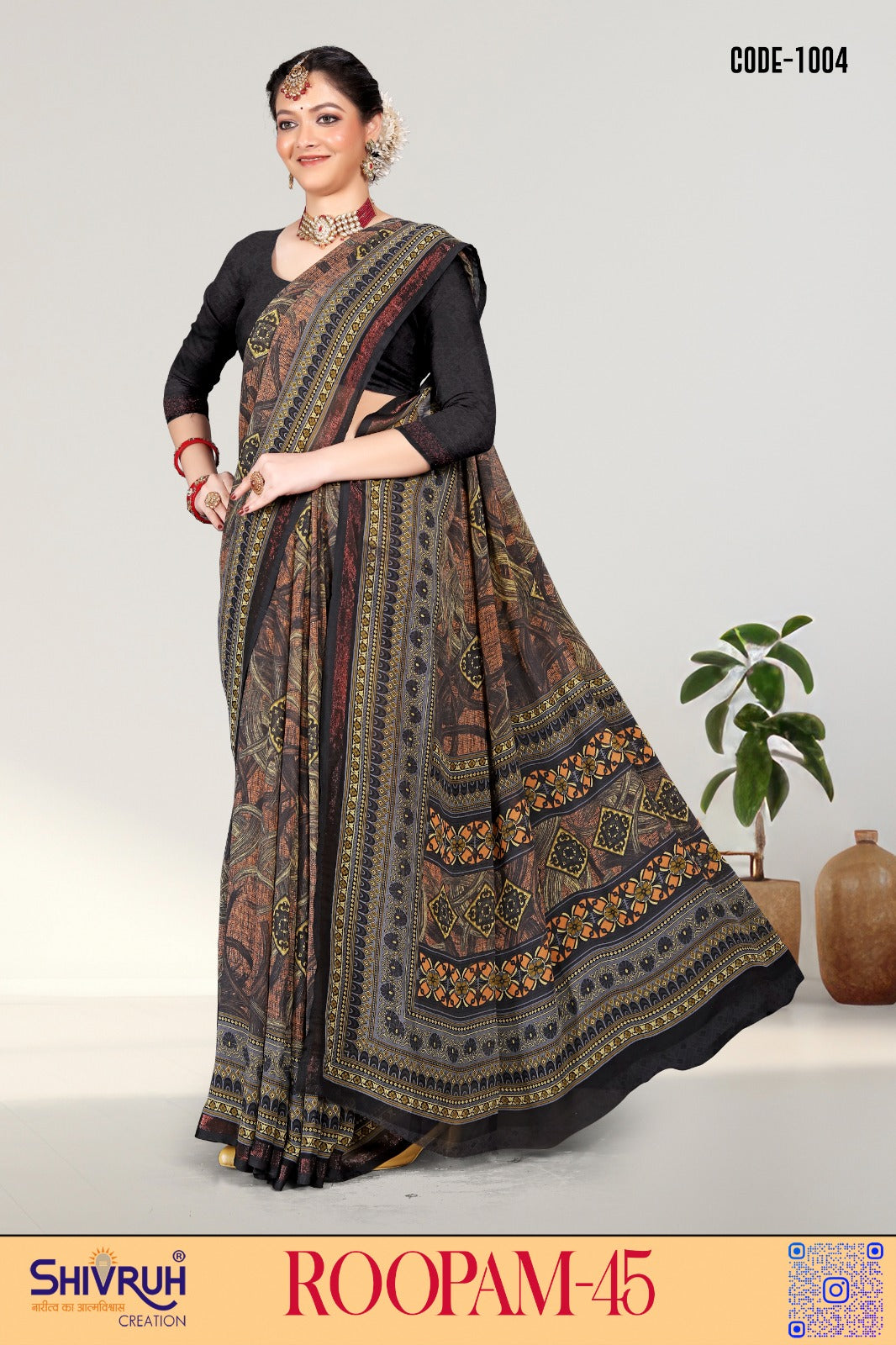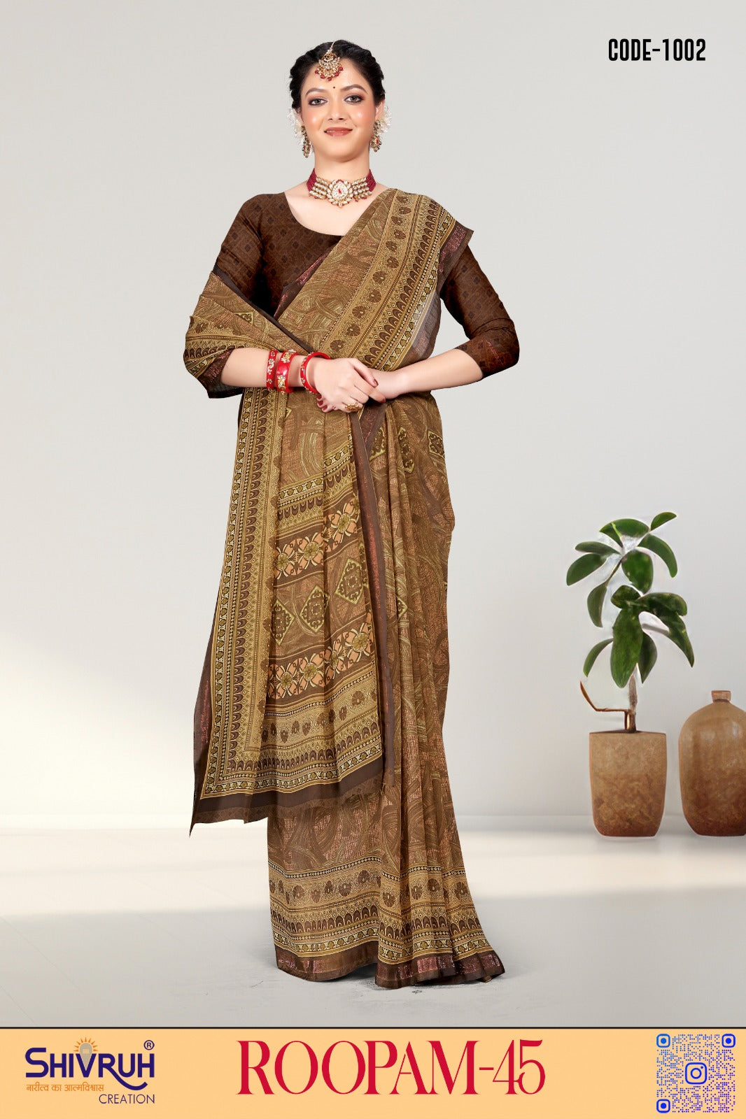 Discover the charm of the Georgette Floral Print Saree with Blouse, thoughtfully crafted for women who appreciate both style and comfort. This lightweight saree features a delicate floral design that adds a vibrant, graceful touch to your traditional wardrobe. Paired with a matching blouse, it offers a seamless and elegant look suitable for daily wear, festive occasions, or celebrations. Easy to drape and maintain, this saree set enhances your confidence and brings a fresh, fashionable appeal to any event. Embrace timeless beauty with this versatile georgette saree.