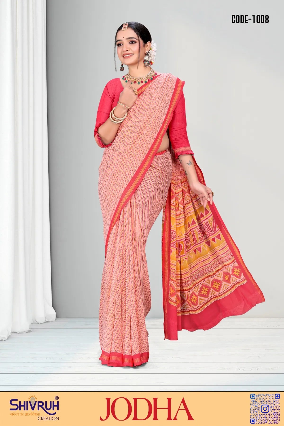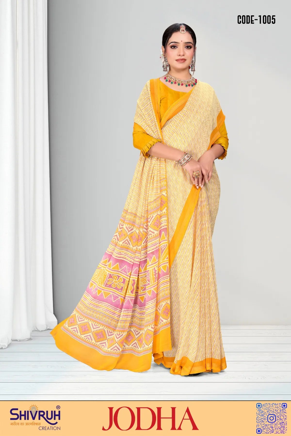 Elevate your traditional saree look with our exquisite New Laheriya design Georgette saree. This luxurious drape features stunning Zari Weaving borders, giving you a graceful and elegant appearance. Perfect for weddings and special occasions, this saree is a must-have addition to your saree collection.