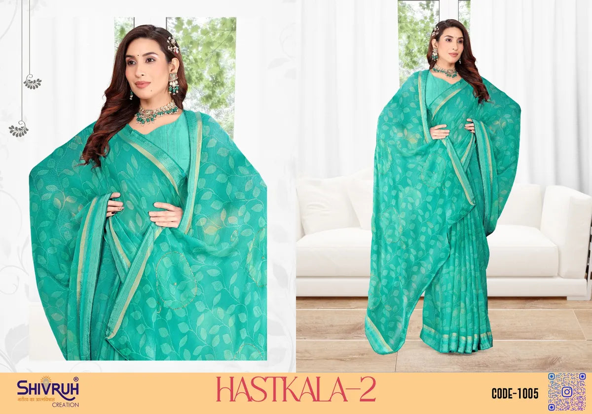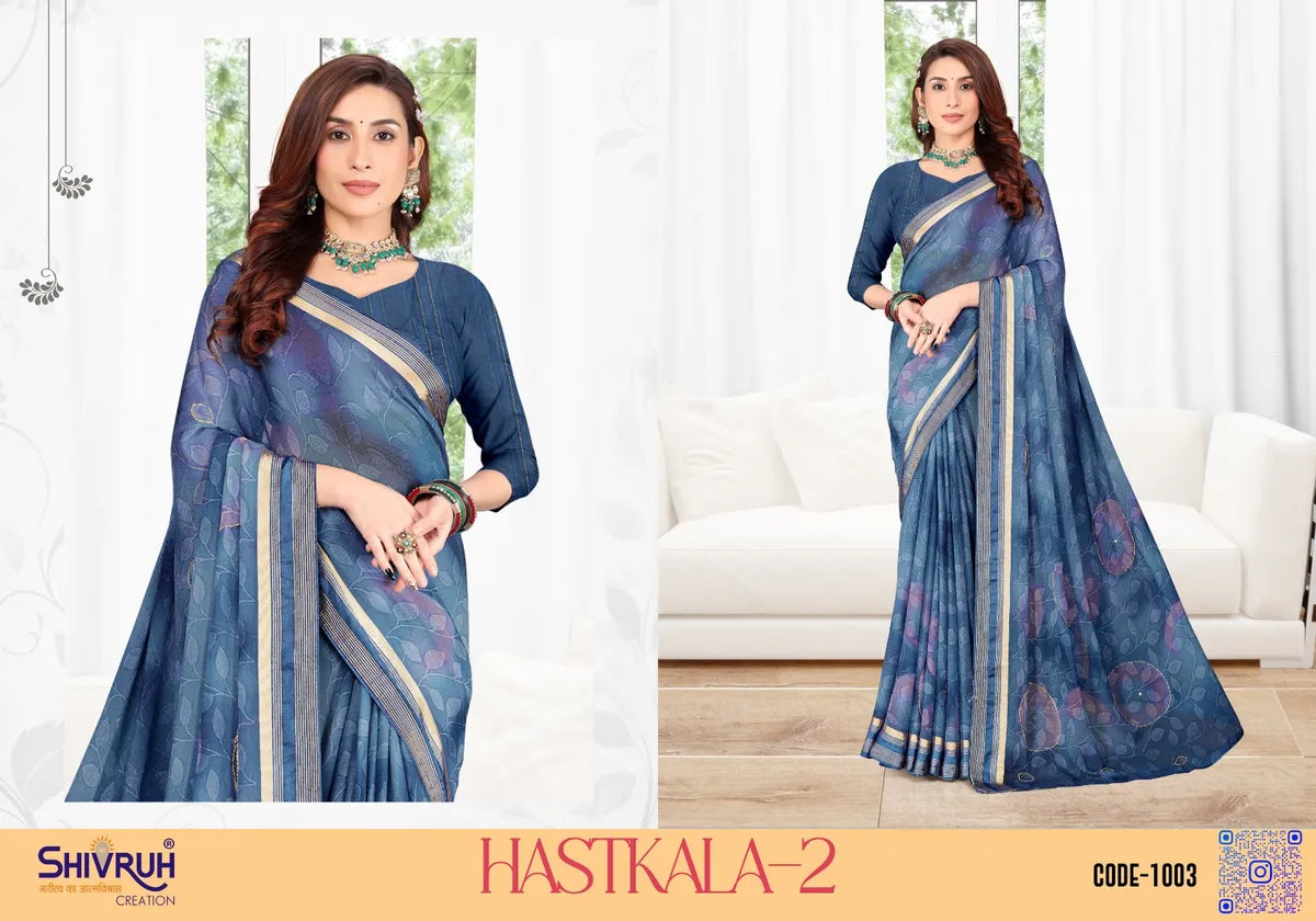 Add some glamour to your wardrobe with our Georgette Sarees for women. Featuring a Zari Weaving pattern and Satin border, these sarees are available in 6 vibrant colors including Purple, Gray, Blue, Mehendi Green, Sea Green, and Pink. Elevate your style with our elegant and versatile sarees. The Premium Party Saree by Shivruh is a luxurious creation designed to make you stand out at any special event. It is a fine balance between traditional craftsmanship and contemporary fashion, making it the ultimate choice for women who wish to celebrate their elegance and beauty on festive occasions. Shivruh, known for its commitment to quality and style, has crafted this saree to bring together opulence and comfort, creating a timeless piece for the modern woman.