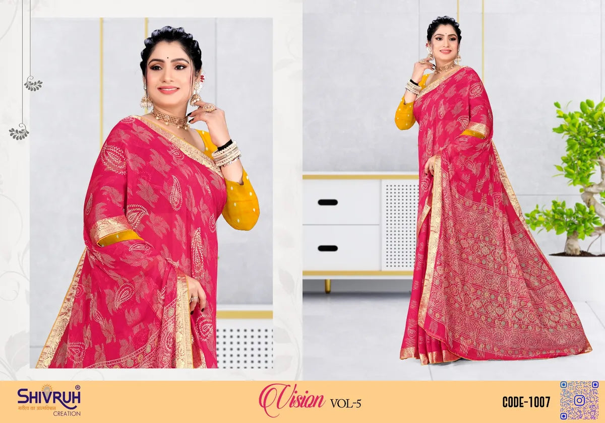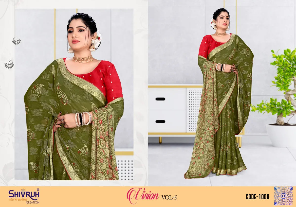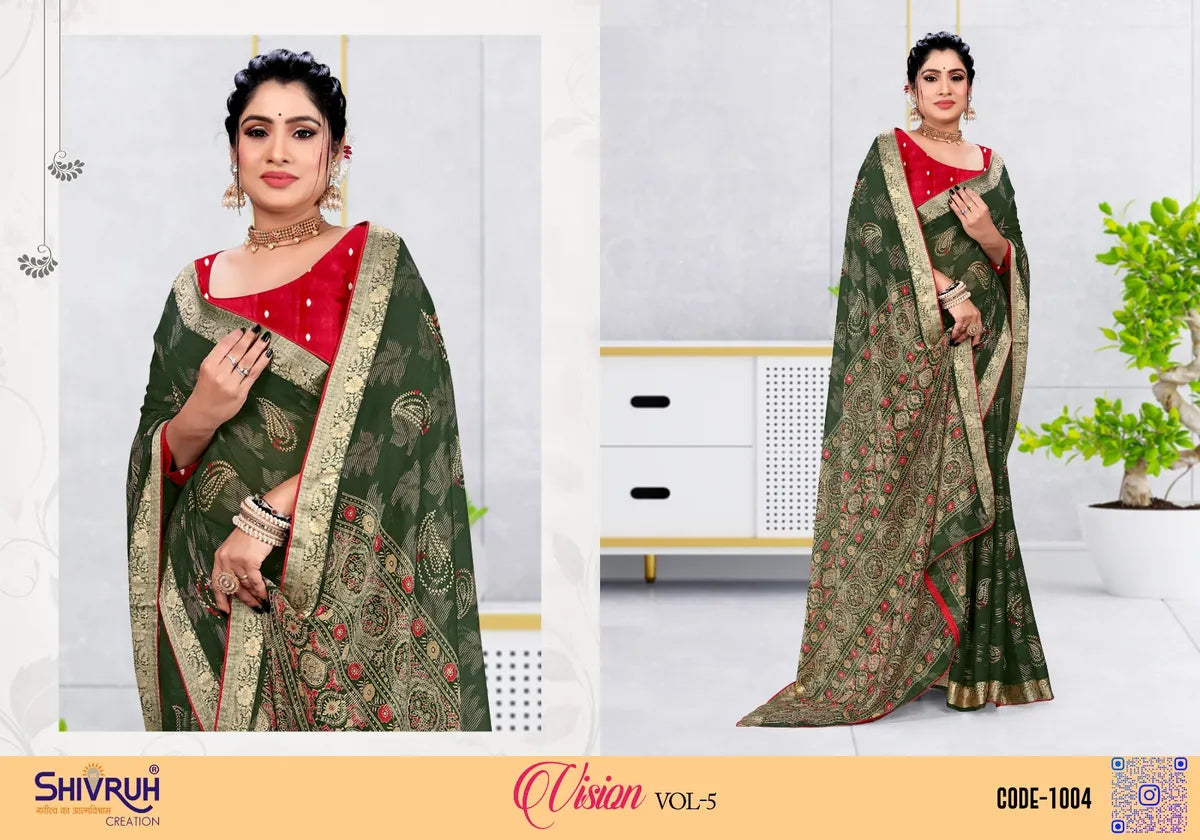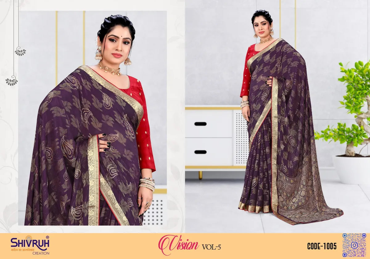 Elevate your style with our Chiffon Embellished Woven Viscose Saree for women. Available in 8 stunning colors like Red, Blue, Yellow, Green, Purple, Mehndi Green, Pink & Violet. This saree features a Chiffon Embellished Jacquard border and Woven Viscose pattern. Perfect for any occasion, add a touch of elegance to your wardrobe. This versatile Chiffon Embellished Woven Viscose Saree for women offers a full 5.5 meter drape and 0.8 meter unstitched cloth, allowing you to customize it to your unique style and size. It is suitable for any occasion, from formal events to professional office meetings. Introducing the Chiffon Embellished Woven Viscose Saree from the renowned SHIVRUH brand. Made with premium quality materials, this saree is perfect for the fashion-savvy middle and upper class women. Elevate your style this season with SHIVRUH.