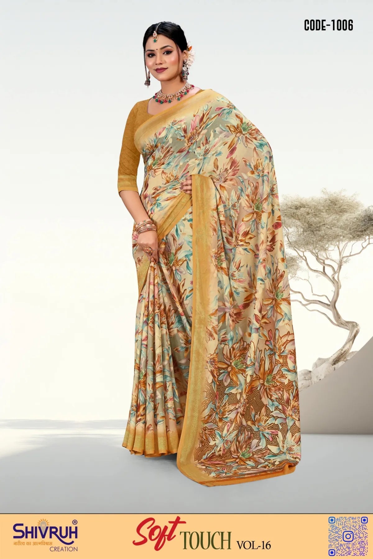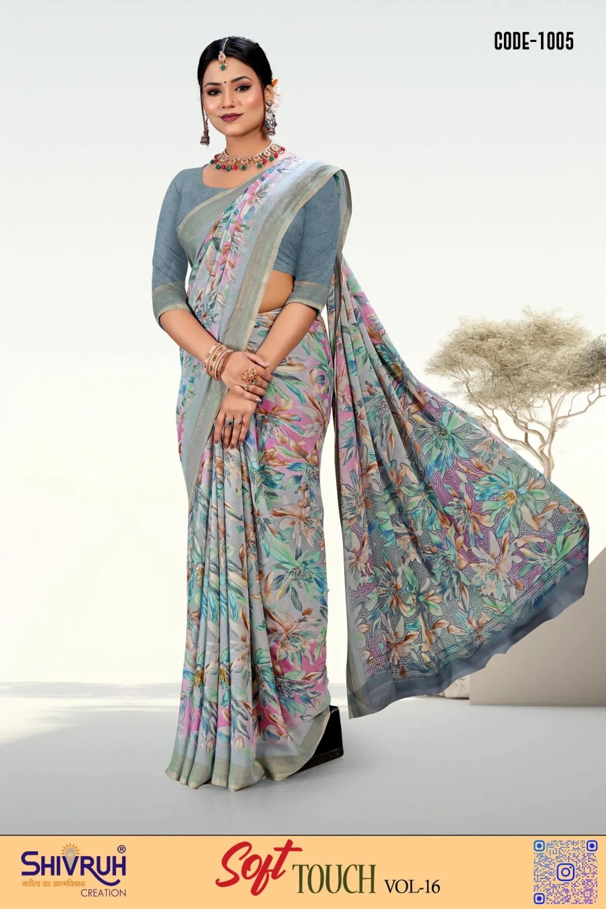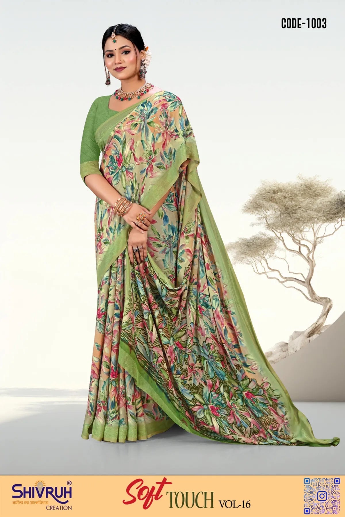 Elevate your saree look with our exquisite new floral print Moss Chiffon saree. This luxurious woven Jari border saree is perfect for any special occasion, adding a touch of elegance and sophistication to your attire. Pair it with a matching saree blouse for a complete and stunning saree dress ensemble that is sure to turn heads at any event.