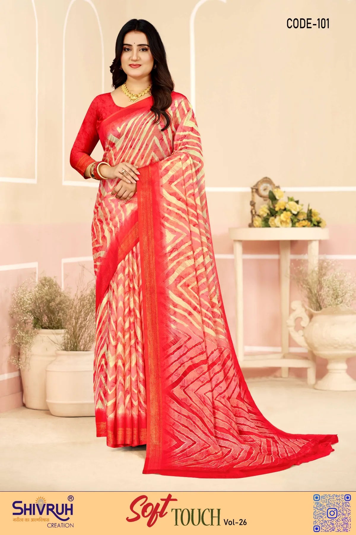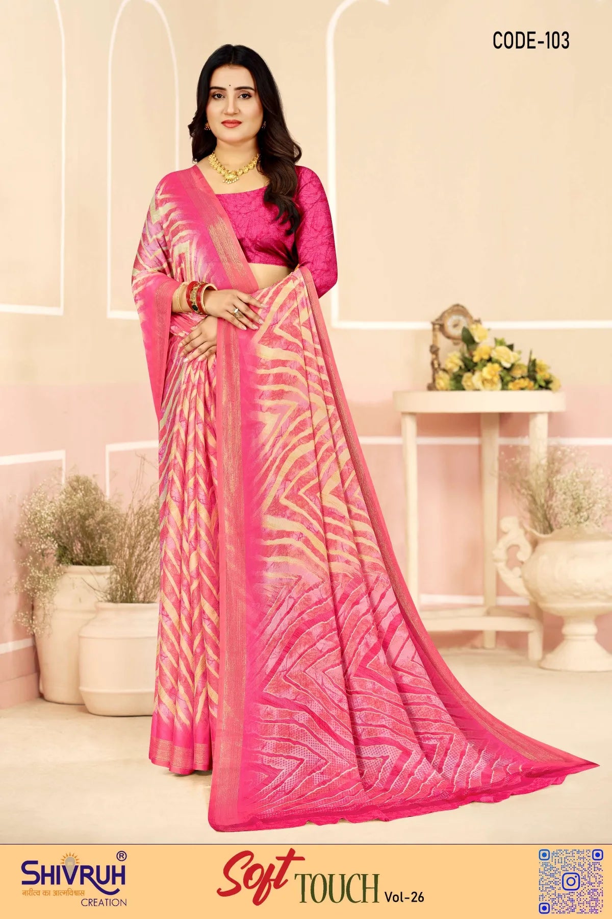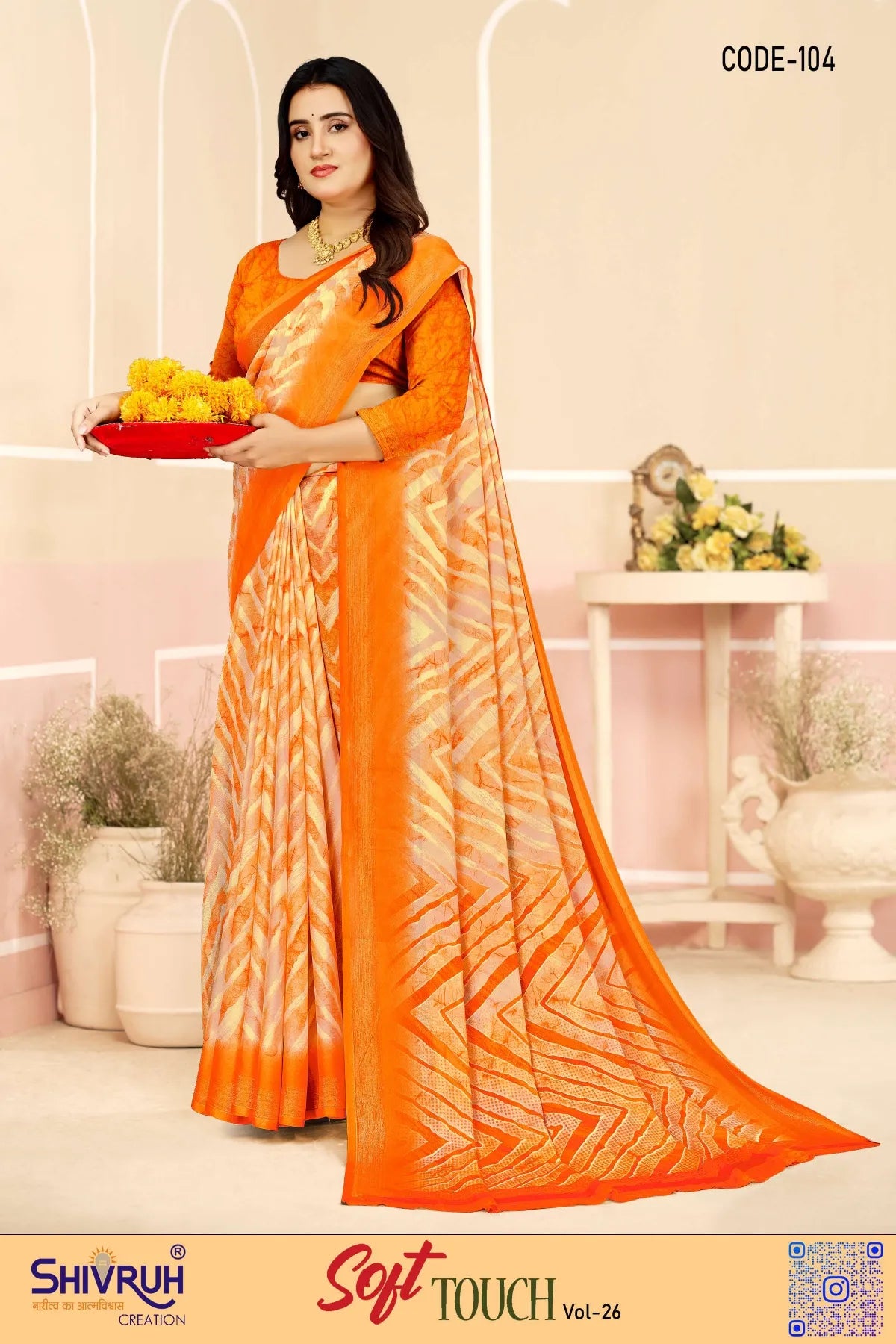 Introducing the latest addition to our SHIVRUH brand collection - the exquisite Moss Chiffon Saree with Laheriya design Printed work. This premium saree and blouse set is perfect for high-class, elite women who appreciate quality and style. The Woven Jari border adds a touch of sophistication, making it ideal for weddings, parties, or any special occasion. Elevate your saree dress look with this elegant piece crafted from the finest materials.