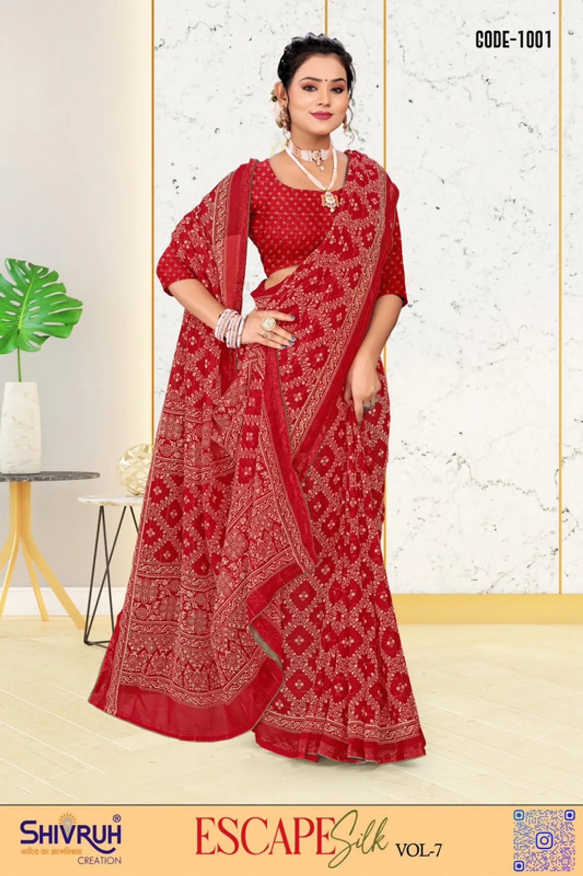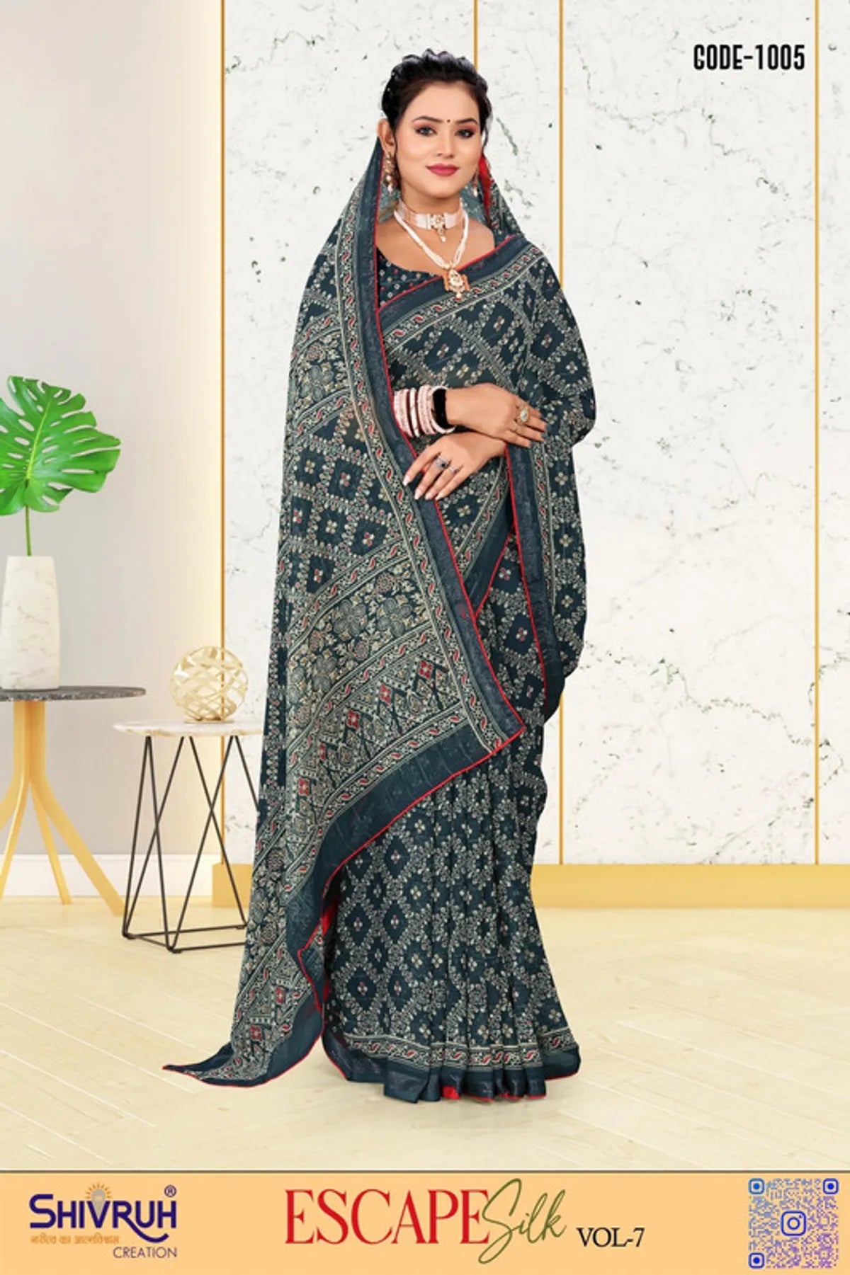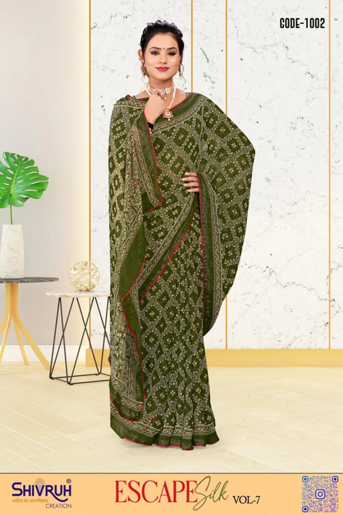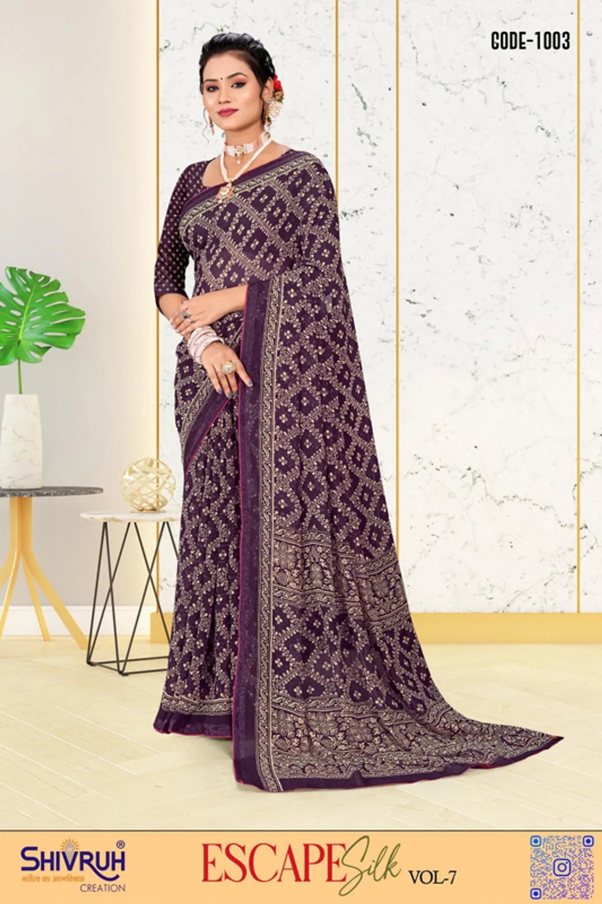 Make a grand entrance with our stunning Shivruh brand new design Georgette saree that is perfect for all occasions - be it a Home Event, Party, Festival or wedding! This party wear saree is crafted with intricate detailing and a gorgeous Geometric pattern embellished with Jari Piping Border, giving you a glamorous and sophisticated look. Add this saree to your collection and be the showstopper wherever you go!
