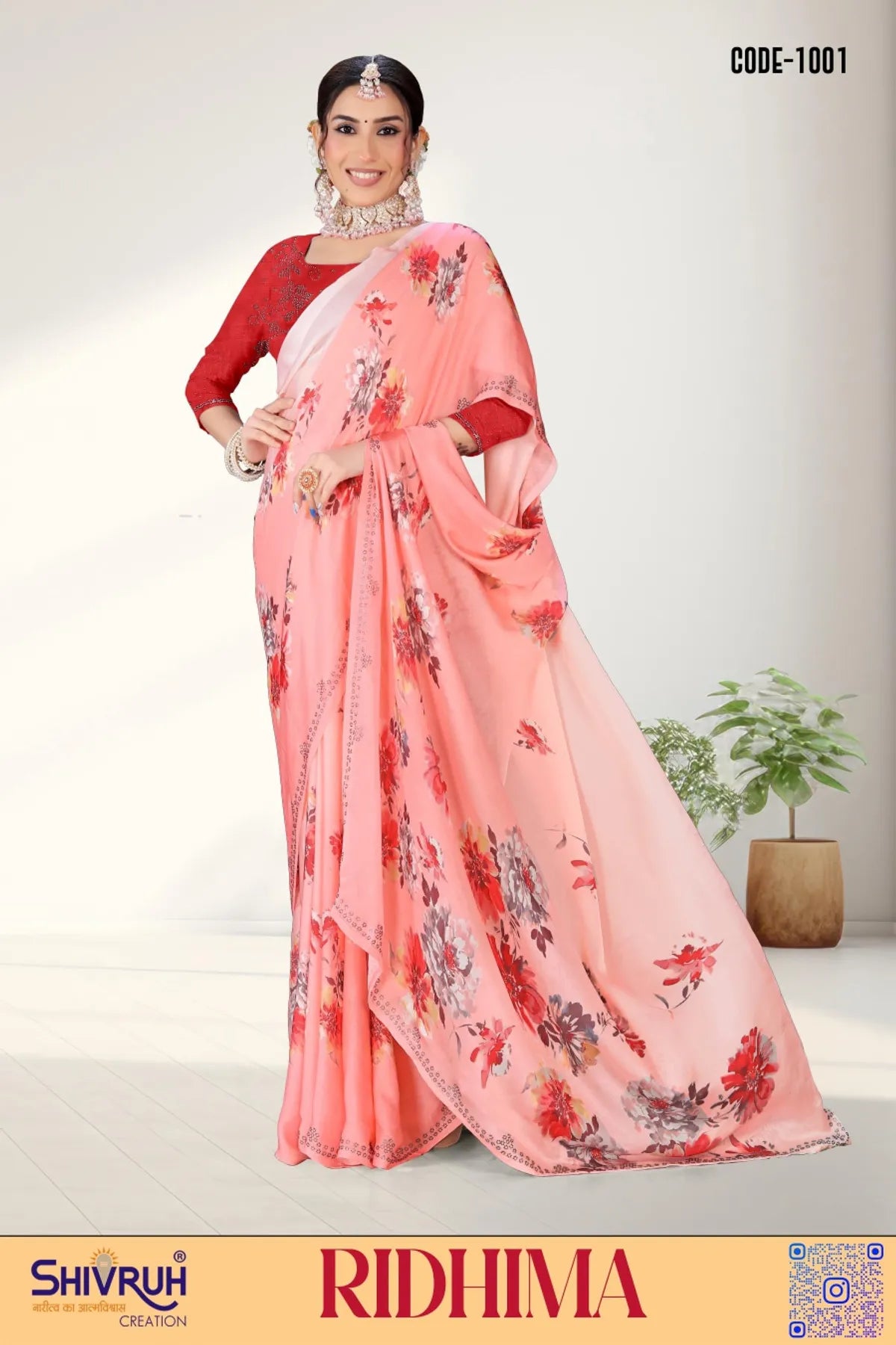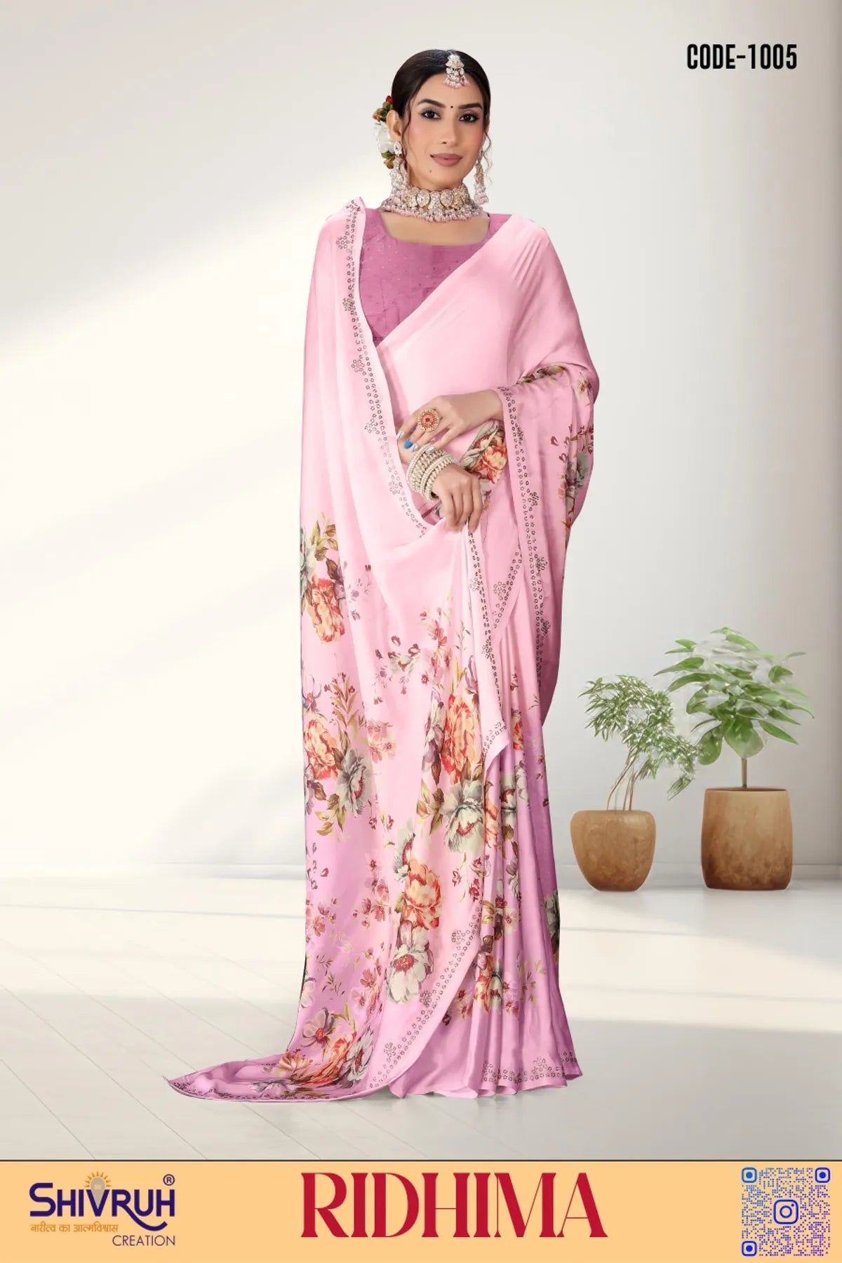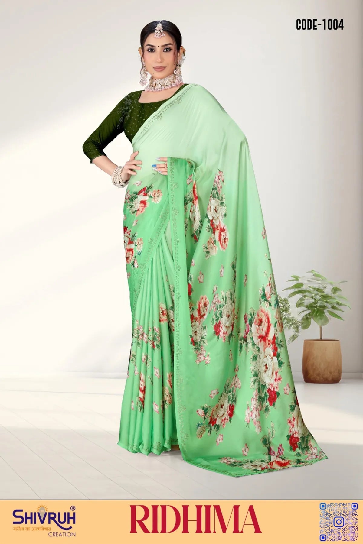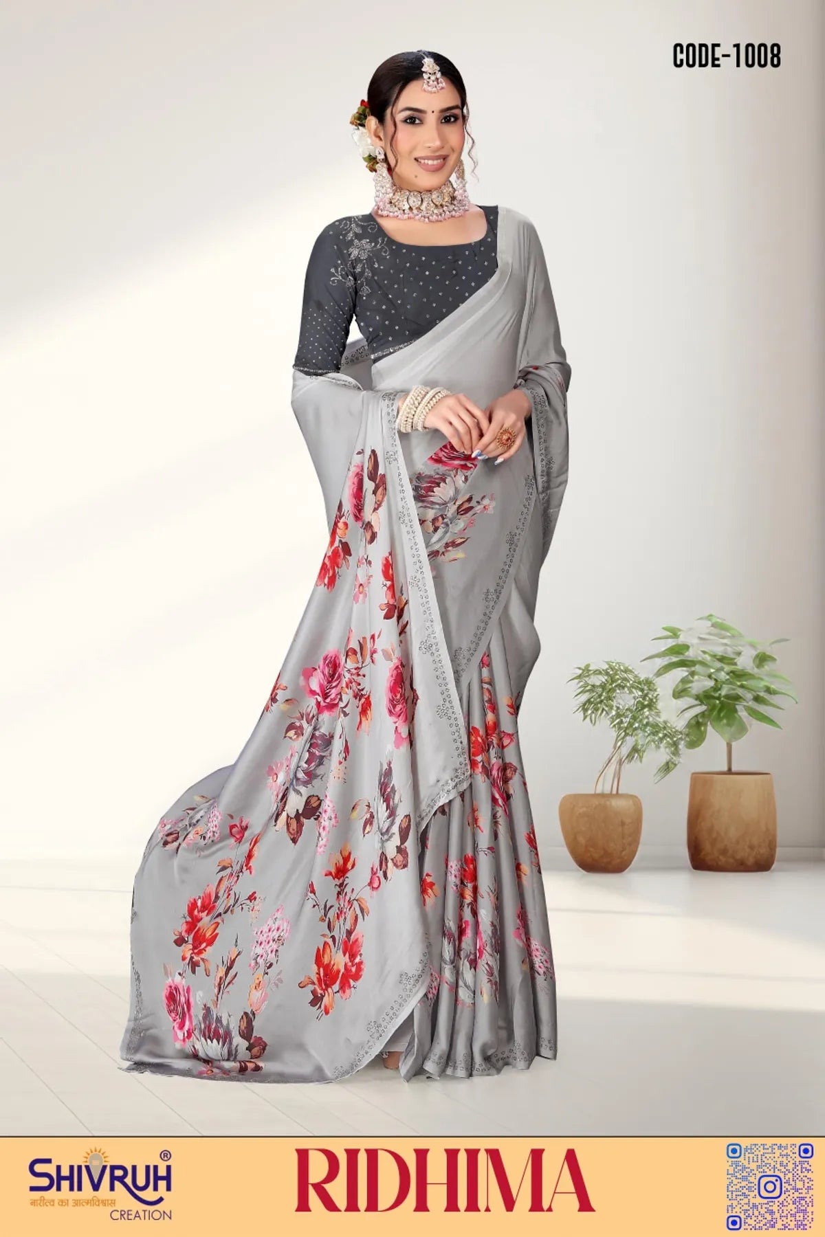Sweet Satin Floral print Fancy siroski (Swarovski) Saree