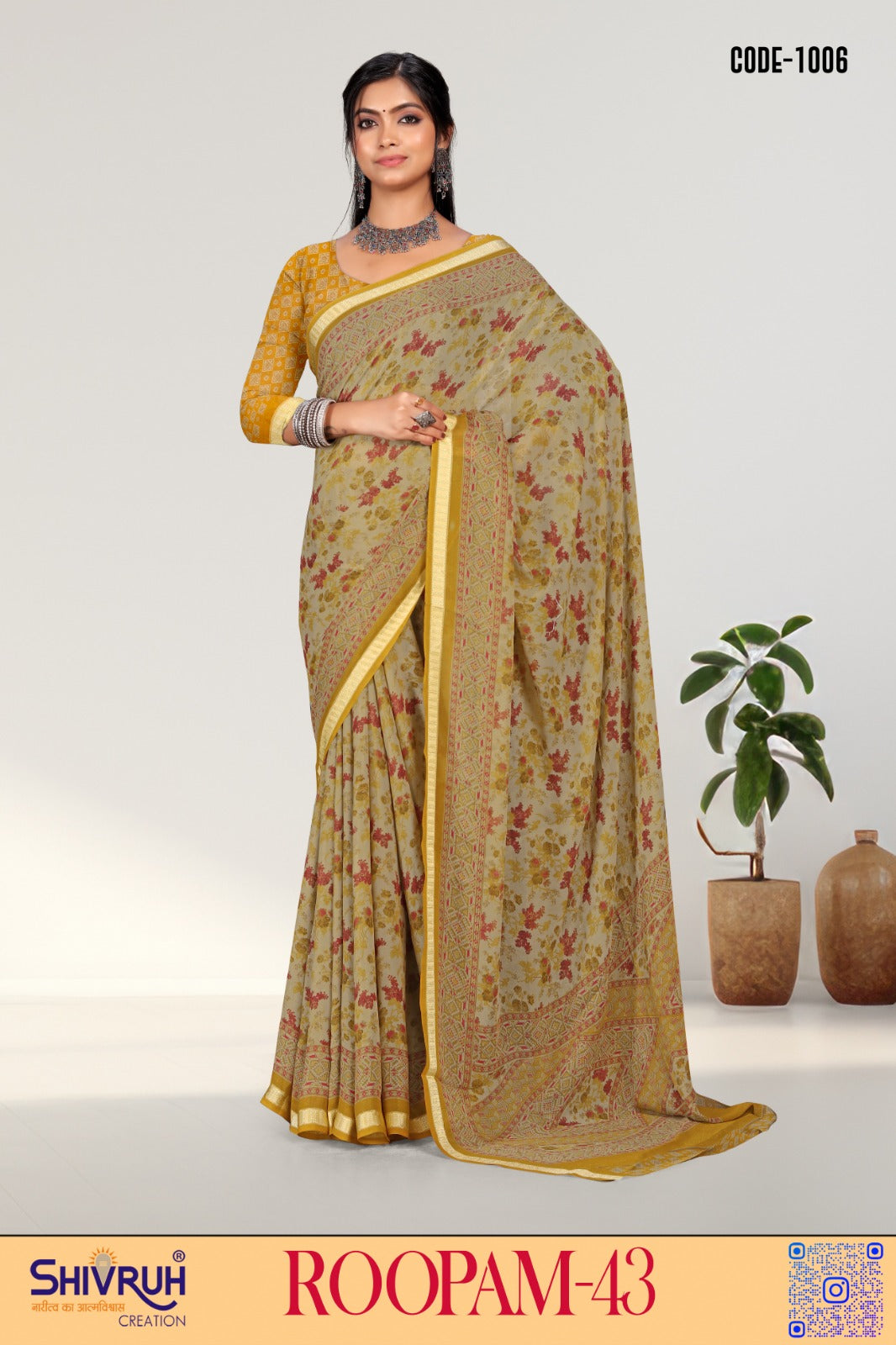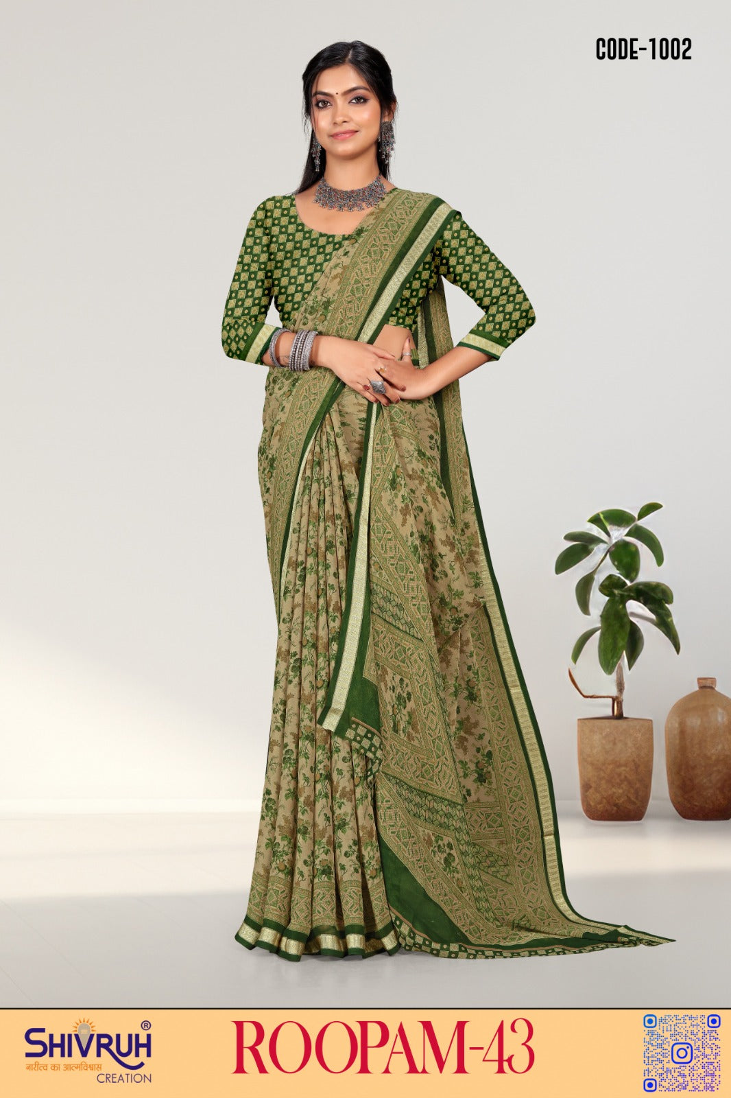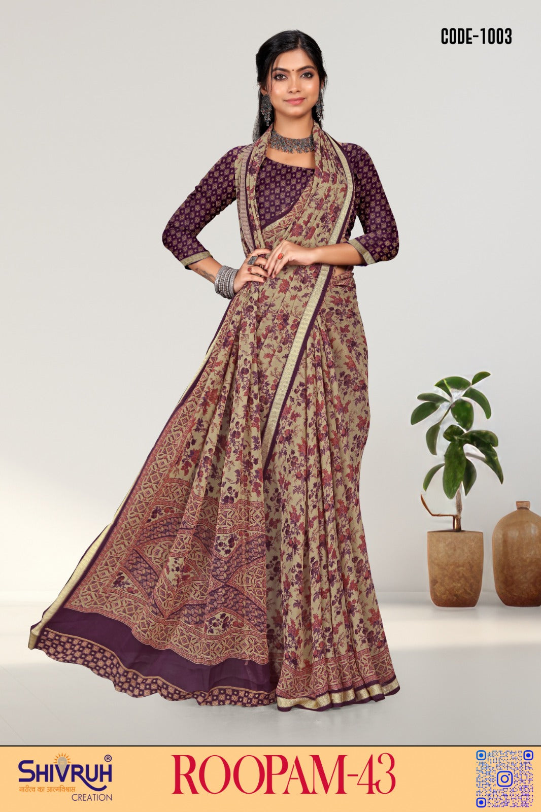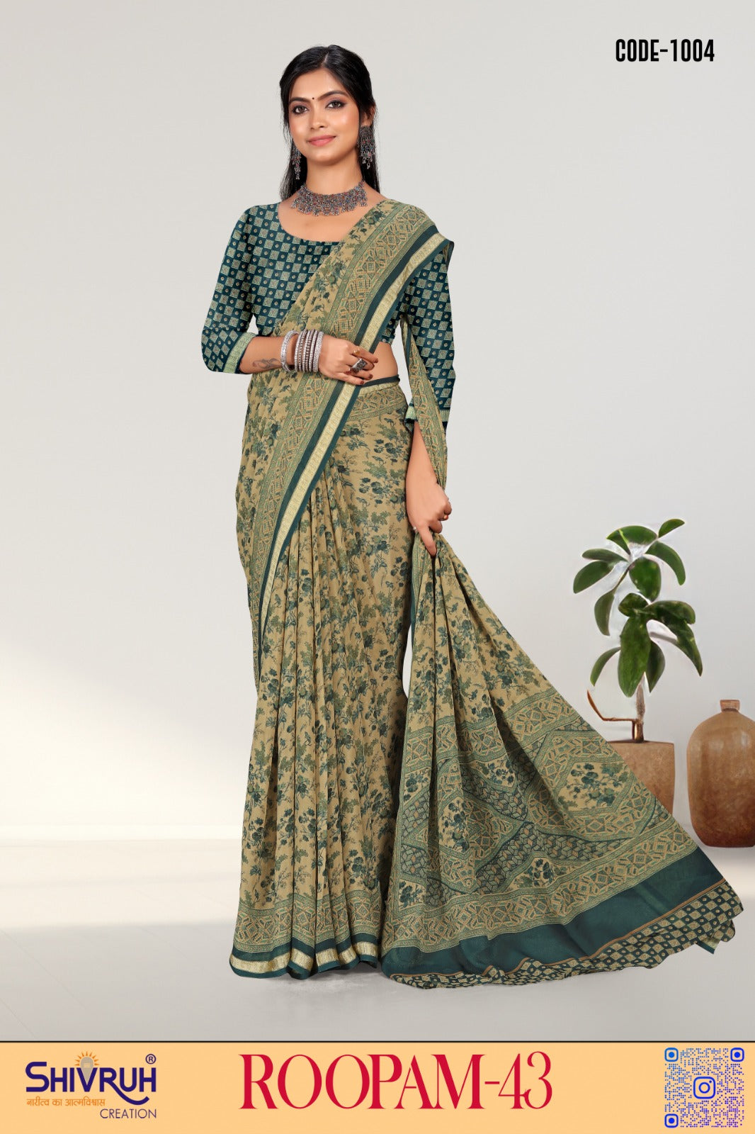 This Traditional Georgette Floral Print Saree, complete with a matching blouse, blends classic style with effortless comfort. The lightweight georgette fabric ensures a graceful flow, while the elegant floral patterns add a timeless charm to your saree look. Ideal for festivals, weddings, or special occasions, this saree offers both beauty and ease, making it a versatile addition to every woman’s wardrobe. Enjoy the blend of tradition and style with this easy-to-wear saree designed to highlight your natural elegance.