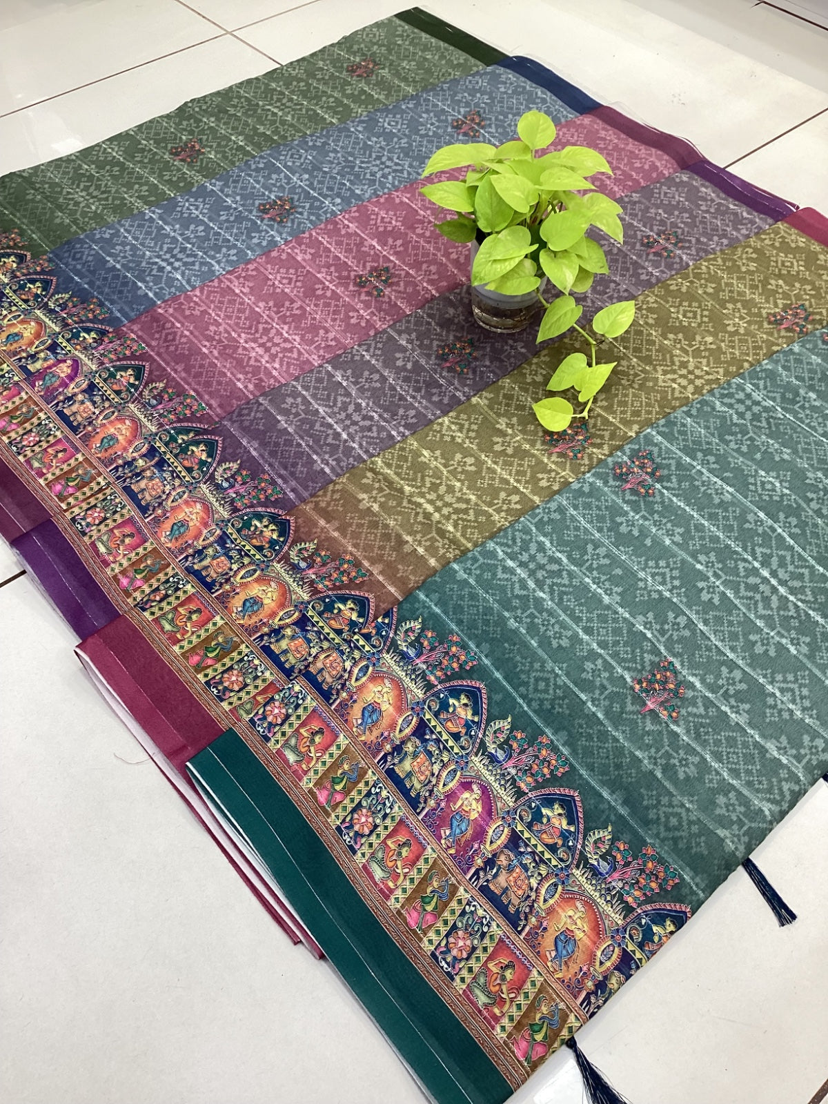 Experience the elegance of this velvet cotton saree featuring a fringed pallu and matching blouse. Crafted from breathable cotton, it ensures all-day comfort, while the velvet accents add a touch of refined luxury. Perfect for festive occasions or casual wear, this saree blends timeless tradition with contemporary style. Created for women who appreciate both comfort and fashion, it is a graceful and versatile piece for your wardrobe.