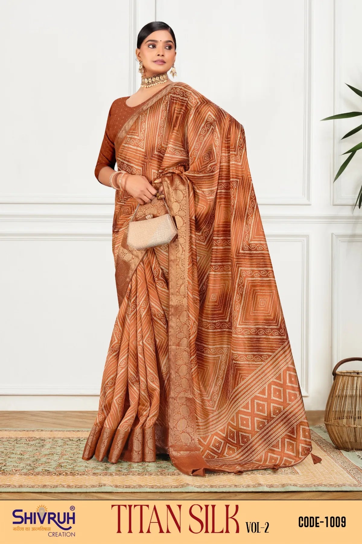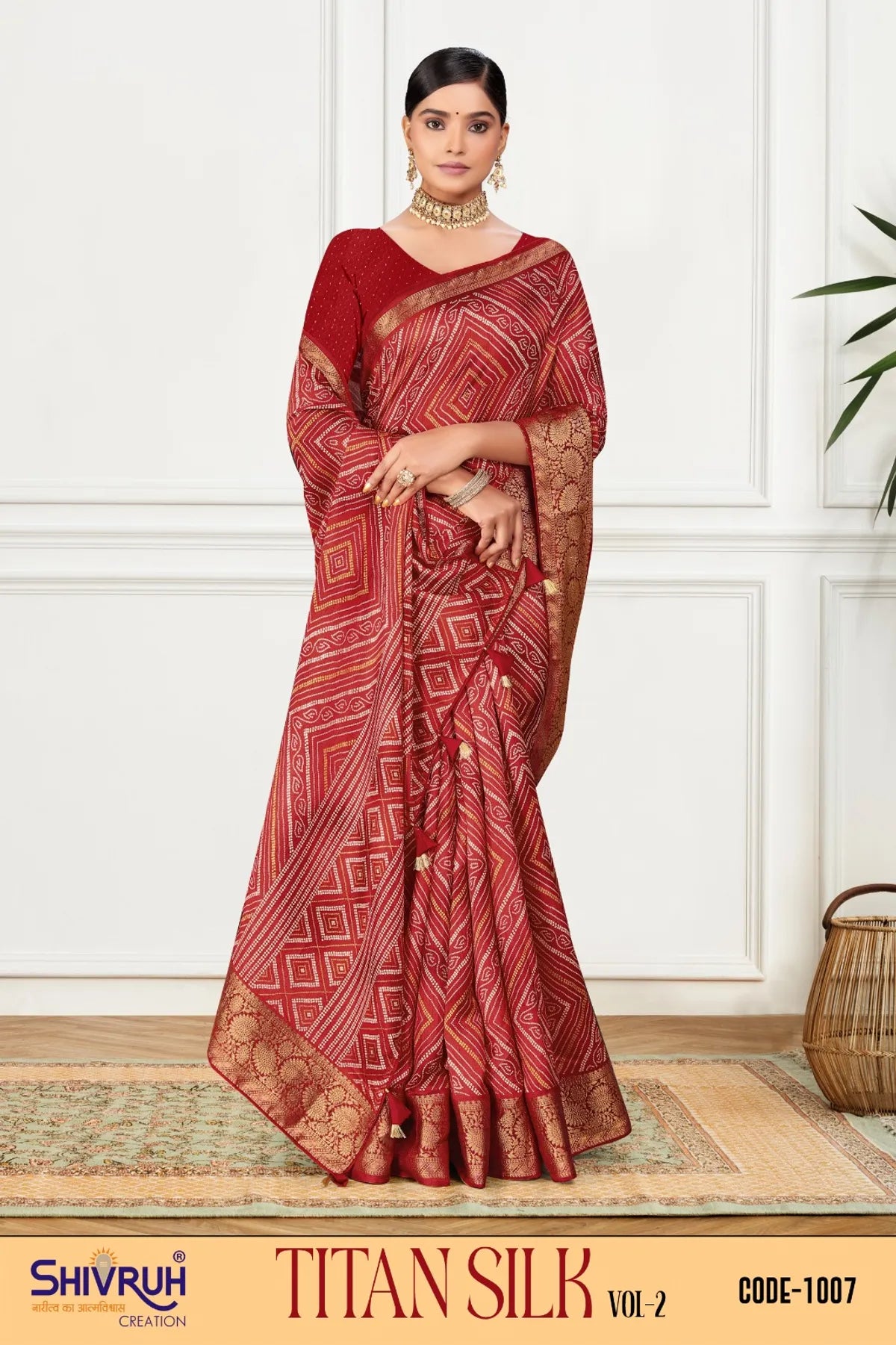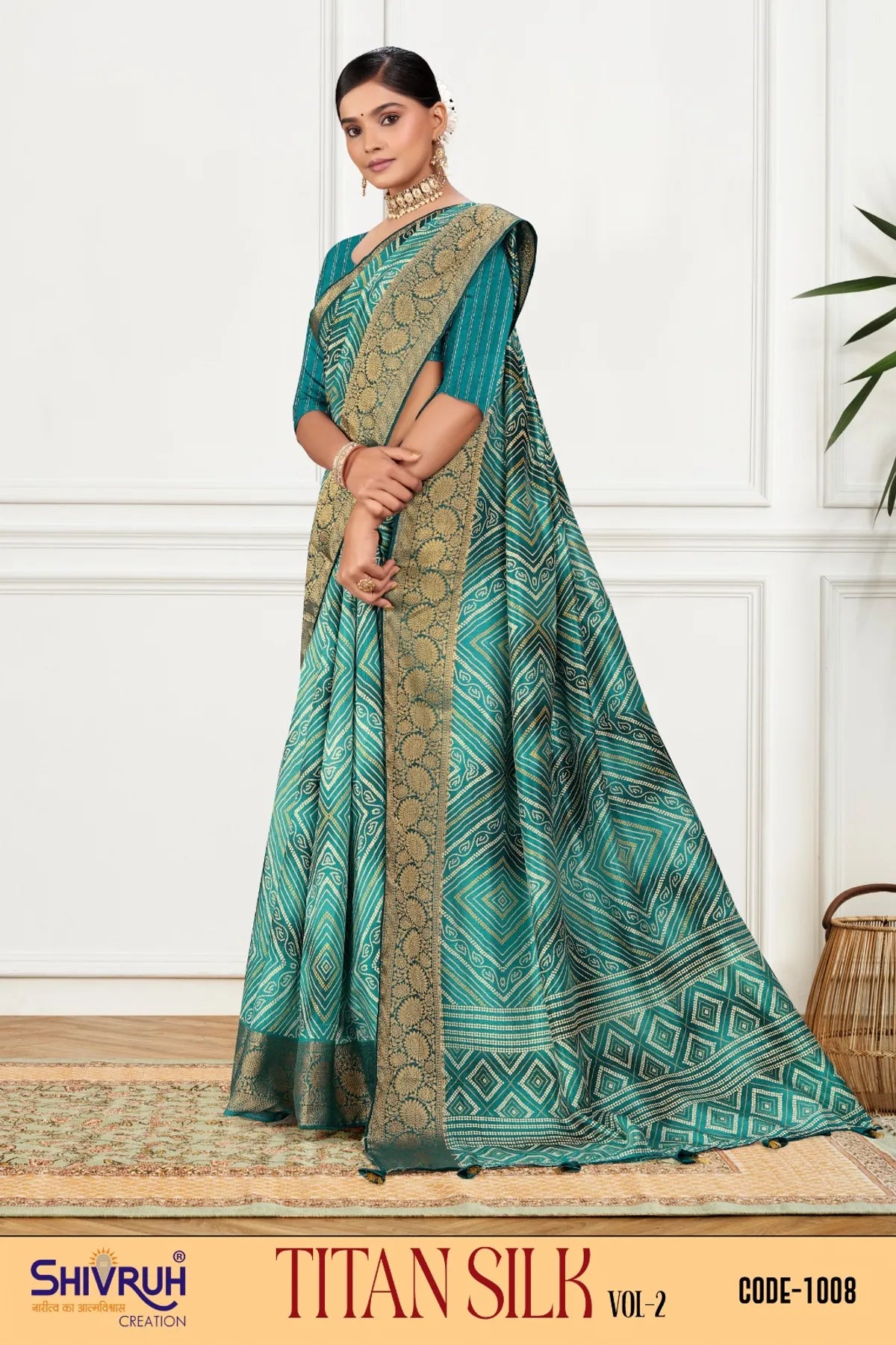 Indulge in the opulence of our Women's Dola Silk Geometrical Print saree. Crafted from sumptuous Dola Silk and adorned with a meticulously designed Geometrical pattern and Jacquard border, this saree exudes sophistication. Available in 6 exquisite shades, including the majestic Red, Sea Green, Bronze, Grey, Purple and refined Green, elevate your wardrobe with our Women's Dola Silk Geometrical Print saree. Its luxurious silk fabric and striking geometrical print make it the ideal choice for any occasion, from lavish weddings to professional gatherings. With a length of 5.5 meters and additional unstitched fabric for a blouse, this saree offers versatility and effortless elegance.