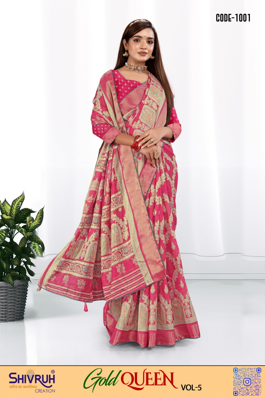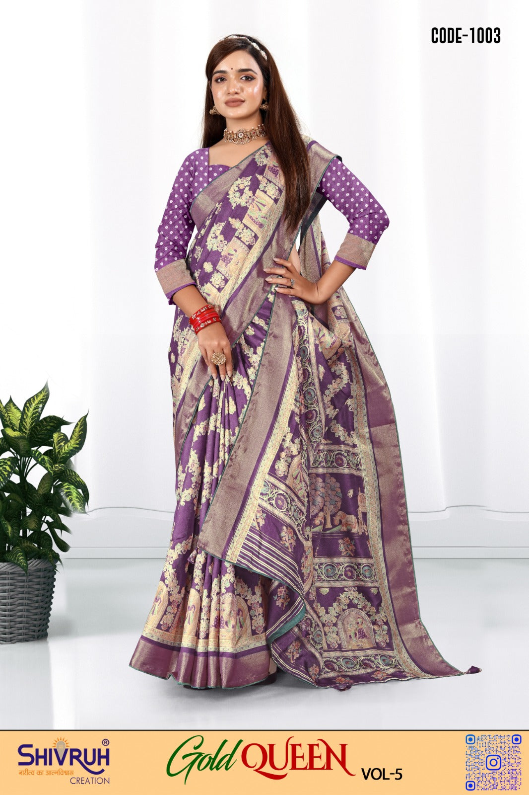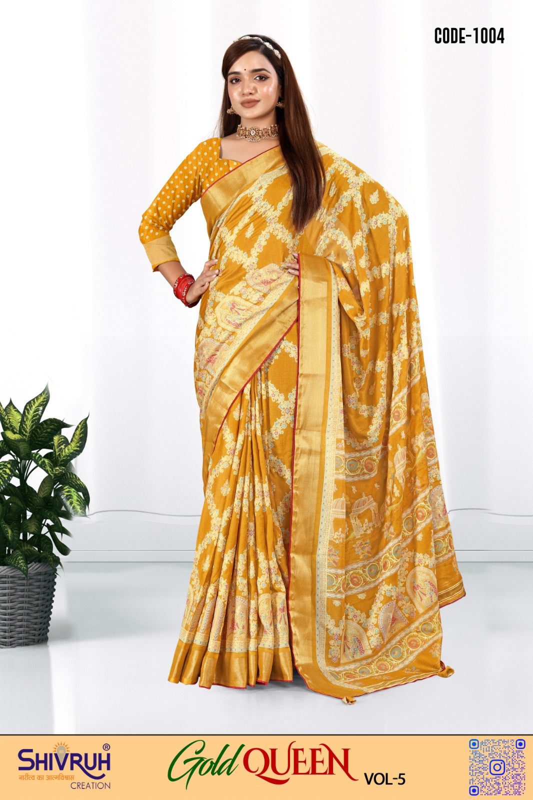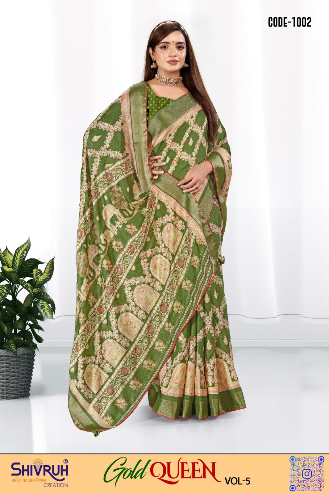 Shivruh Women’s Moss Fabric Foil Touch Saree | Zari Border & Contrast Piping