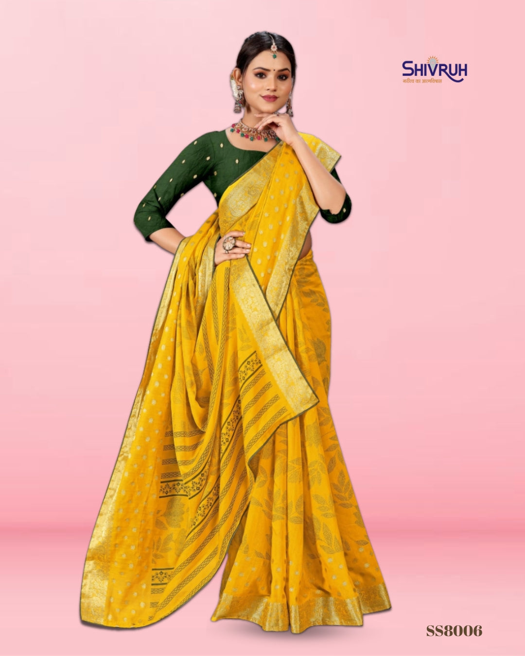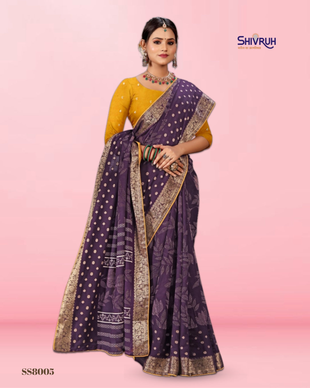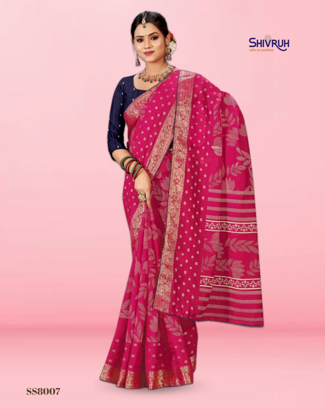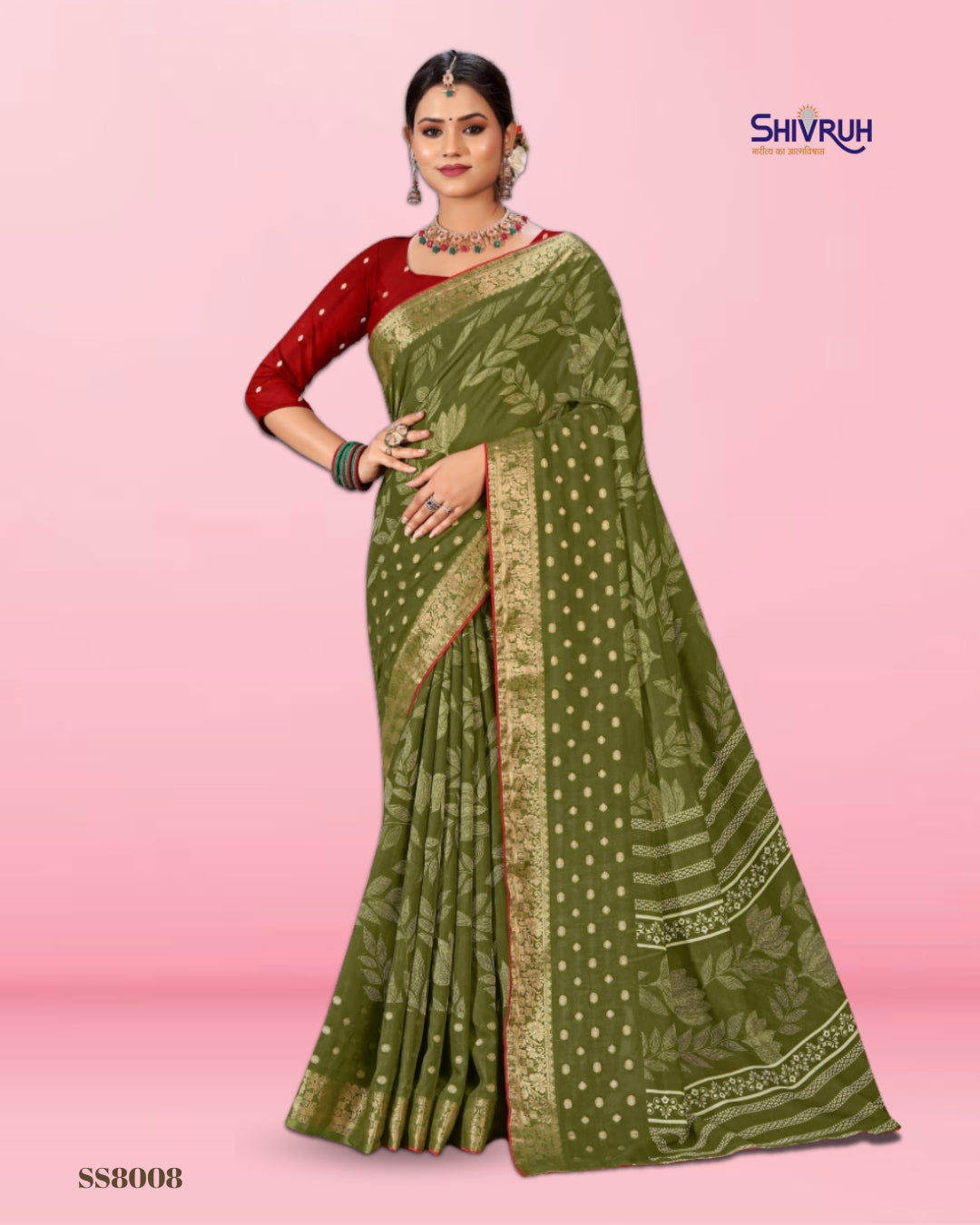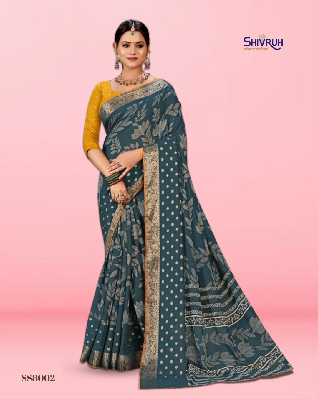 Introducing the latest SHIVRUH Soft Cotton Saree, featuring a beautiful dotted flower print with elegant jacquard border. Crafted in breathable soft cotton fabric with a matching running blouse, this saree offers comfort, classy look, and perfect finishingβideal for daily wear and festive occasions.
